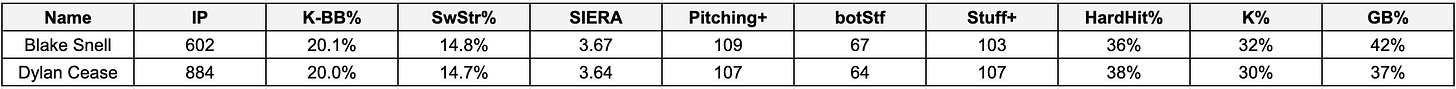 The inconsistency starts with his command. Since 2021, only Blake Snell has a higher walk rate among pitchers with 500+ innings. The pair has similar underlying profiles during this time.
