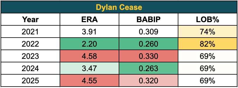 Cease is one of the most durable starters in baseball, with 32+ starts in each of the past five years. The challenge is figuring out what kind of results you’ll get.